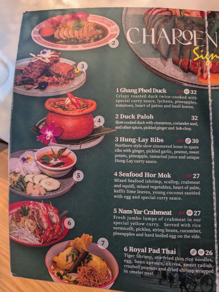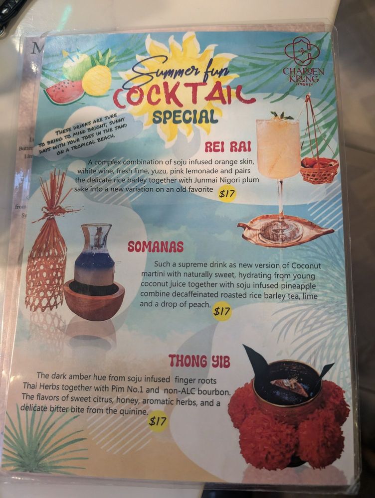 Charoen Krung is a Thai restaurant in New York offering a diverse menu of salads, Thai dishes, and desserts. Known for its cozy yet vibrant atmosphere, this restaurant provides a memorable dining experience. Notable highlights include the crispy duck, drunken noodles with a perfect spice level, and flavorful appetizers. The menu also features winter drinks like Rei Rai, Chid Chan, and ArLhong, as well as winter foods such as Shrimp Paste Fried Rice and Tom Yum Seafood Noodle. Customers praise the extensive menu options for cocktails, mocktails, appetizers, and main courses. The service is highly recommended, with friendly staff and delicious dishes like crispy pork belly, hung lay ribs, and ghang PED duck. Overall, Charoen Krung Thai delivers authentic Thai cuisine in a vibrant setting, making it a must-visit for food enthusiasts.