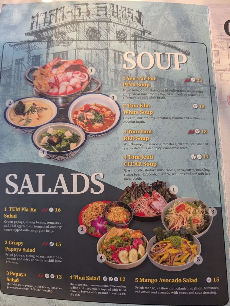 Green papaya, string beans, tomatoes, Thai eggplants in fermented anchovy sauce with crispy pork belly.