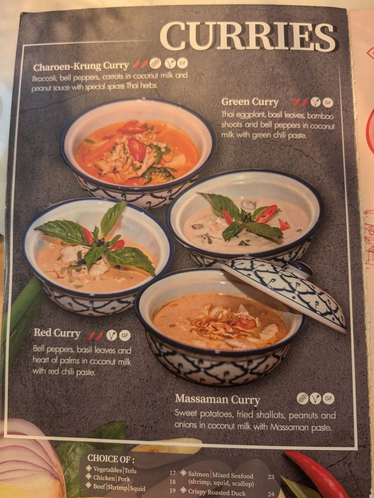 Braised beef spare ribs in coconut milk with Thai herb Panang chili paste. Topped with kaffir lime leaves.